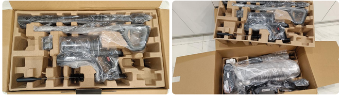 Вся комплектация размещается в два слоя в формованном картоне. Очень компактно, в индивидуальных отсеках с дополнительной зищитой полиэтиленовыми пакетами.