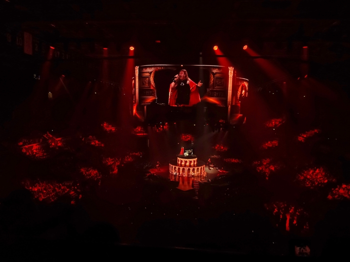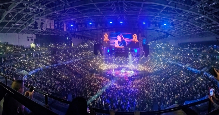 Билет, по опыту предыдущего концерта я взял почти на самом верху. Ибо прекрасное видеться издалека. Как раз вся сцена как на ладони. Плюс в прошлый раз Житняков летал под куполом как раз напротив меня.