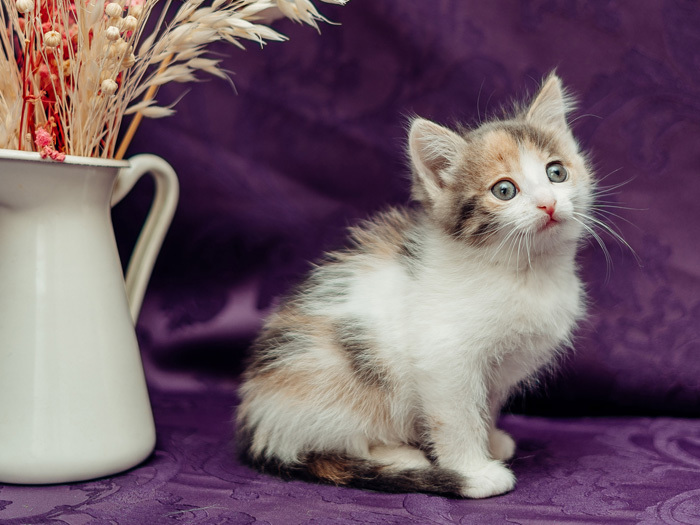 Роскошная трехцветная молодая кошечка Мотли в добрые руки