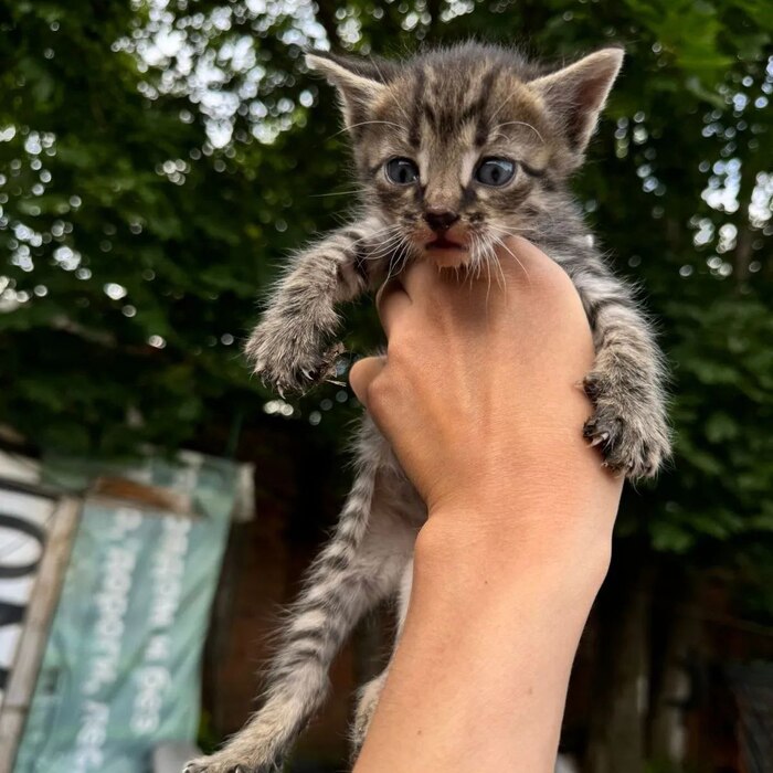 Очаровательный мальчишка ,примерно 2 месяца . Был найден в переноске у обочины дороги с сестрой и братиком . Очень тянется к человеку, ласковый, спокойный, к лотку приучен , ест влажный корм для котят и сырую курицу . Ищем самых ответственных хозяев!
