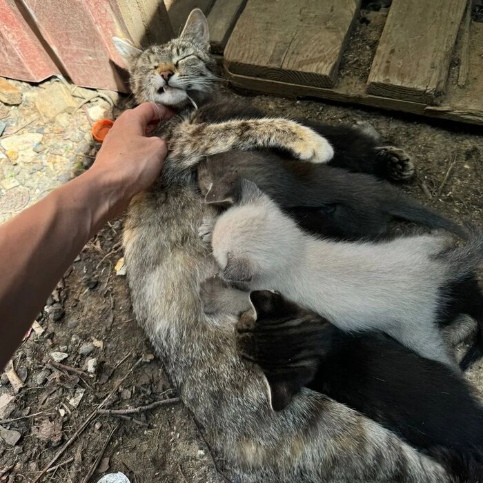 На территории строительной базы 5 маленьких котят и их мама. Котятам месяц, не больше. На территории рабочие подкармливают, но скоро база переедет и начнутся строительные работы, забрать им их некуда. Может кто-то возьмет по одному котенку и маму. Они уже кушают не только молоко, паштеты тоже. Мама очень миниатюрная, сама еще котенок.