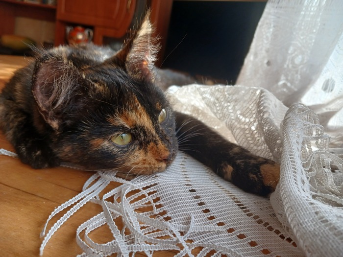 Вообще-то изначально мы назвали ее Дусей, но после недавнего бегства и 3 дней поисков по участкам коттеджного поселка она стала Мией.