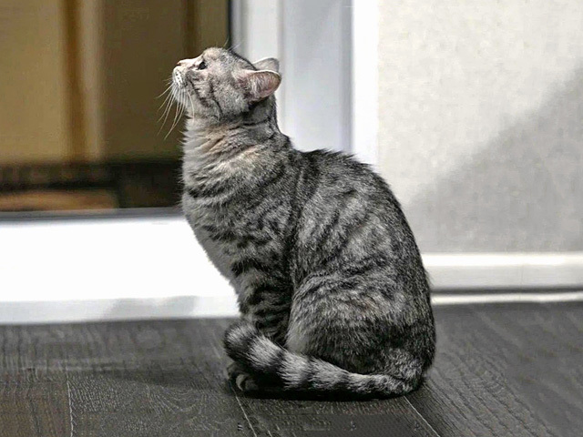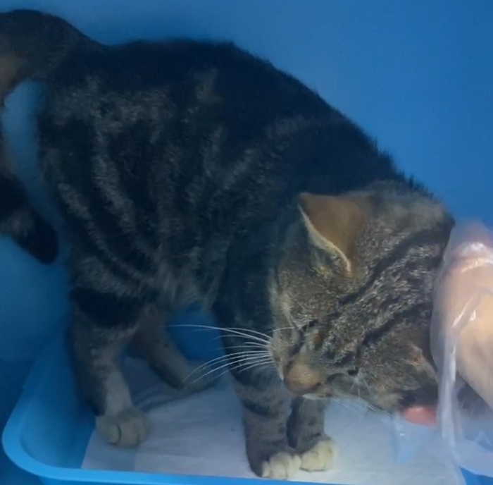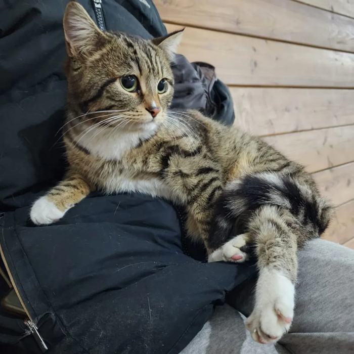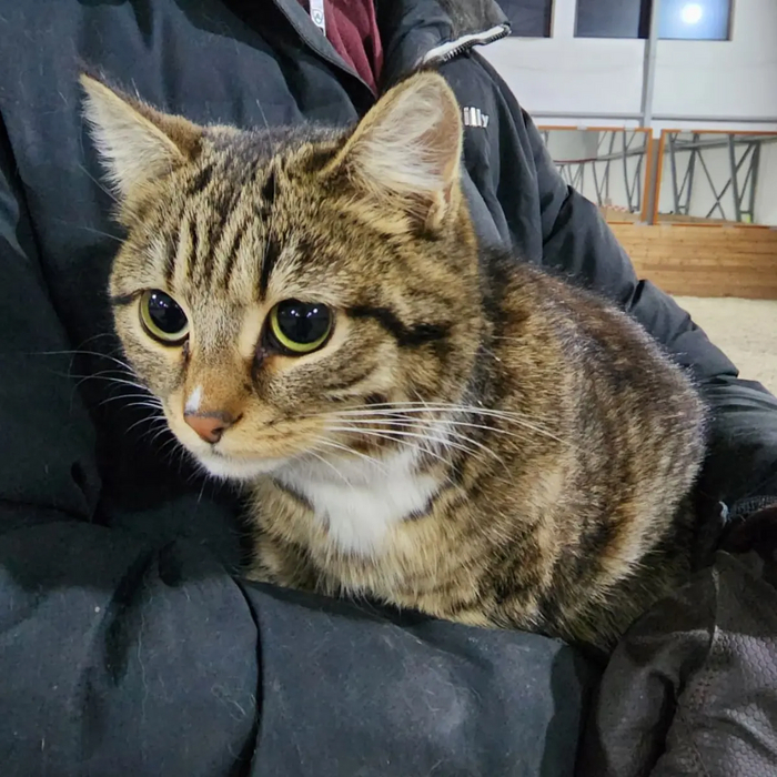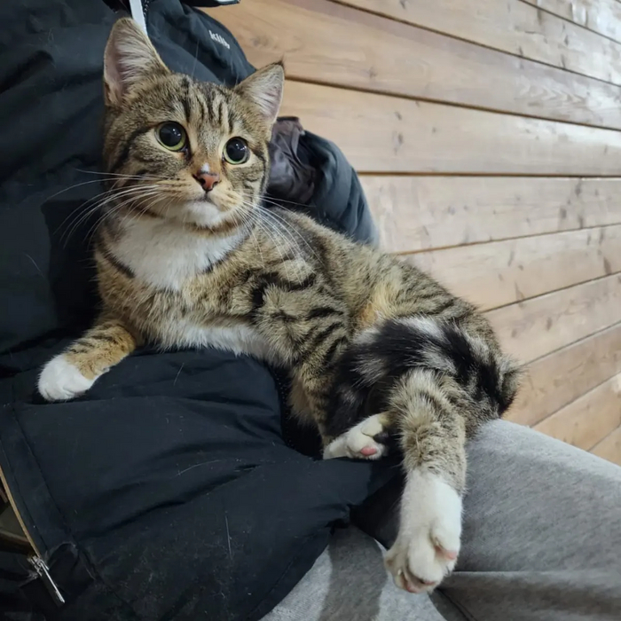 Вот такую милейшую домашнюю кошечку с глазами-блюдцами подкинули недавно на подмосковную конюшню.