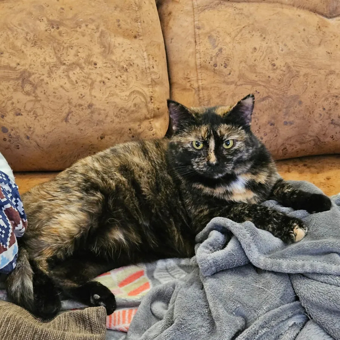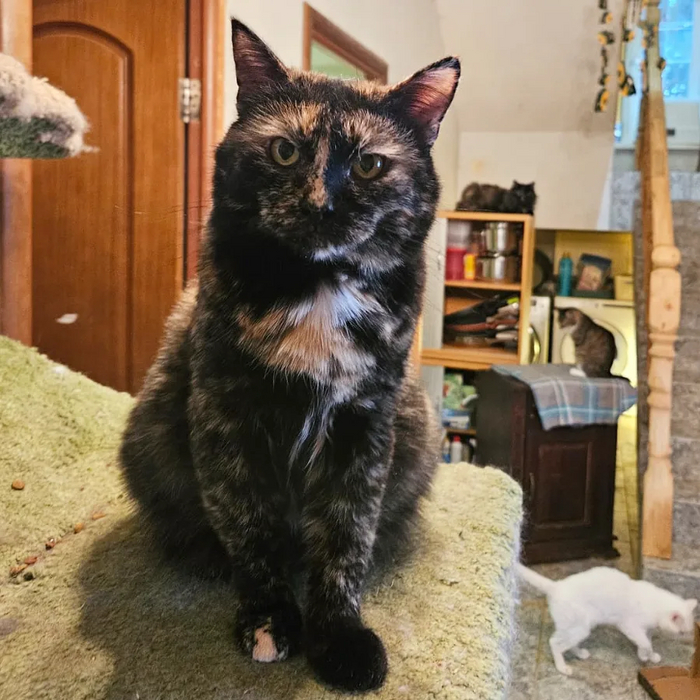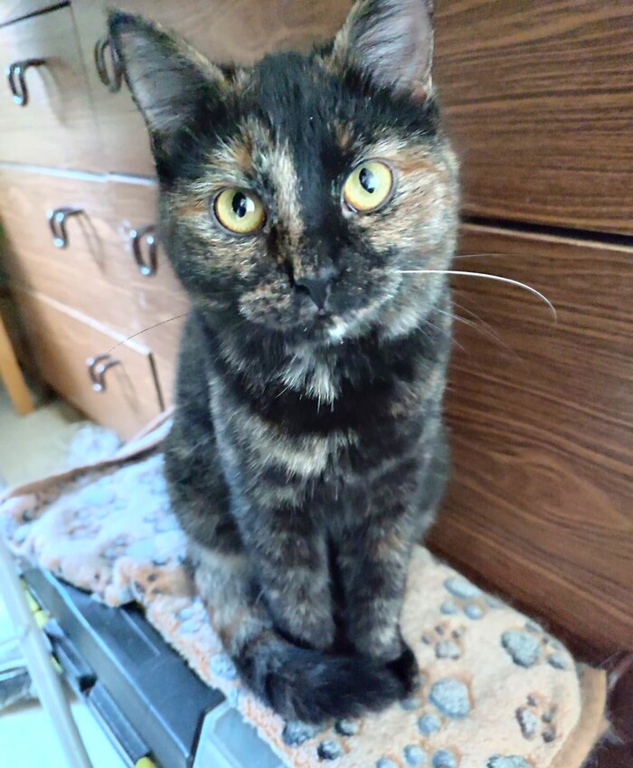Кити спасена с улицы. Как она там оказалась, я не знаю. Возможно когда-то она могла быть даже домашней кошкой, так как знает все кошачьи премудрости: пользуется лотком и когтеточкой на 5+. Ласкова, аккуратна, не конфликтна и ненавязчива, но в тоже время с легкостью отзывается на приглашение поиграть с человеком. С удовольствием подставляет под руки спинку и щечки, просит почесать за ушком.