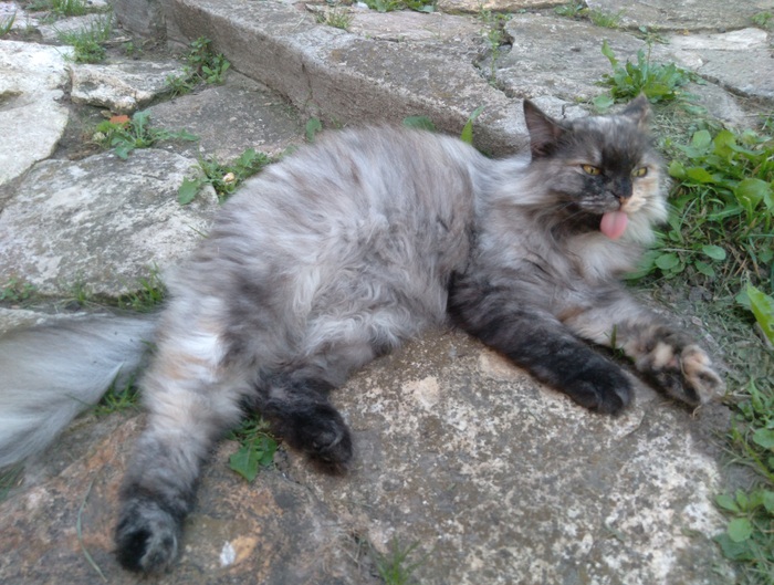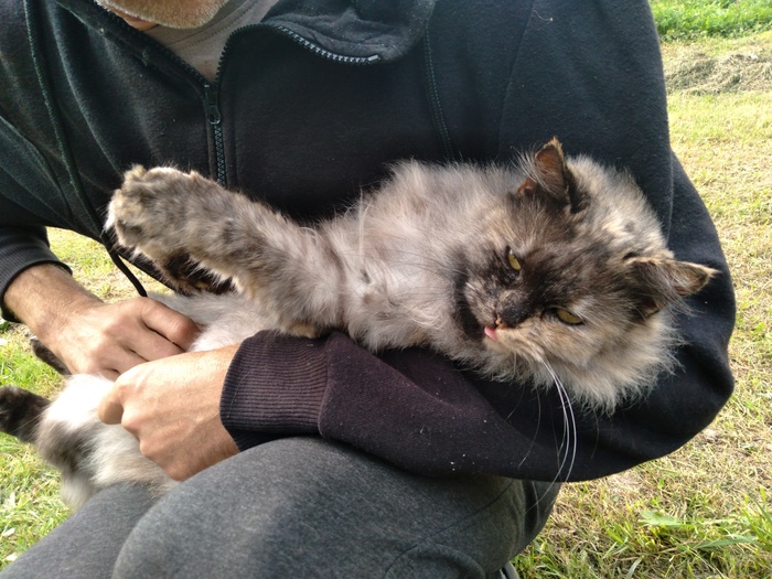 Котёнком в середине лета его выбросили в деревне на плотине у пруда, где автомобильный трафик похлеще чем в городах-миллионниках, ибо там объезд платного участка трассы М-4.
