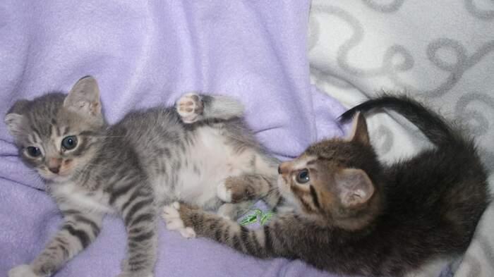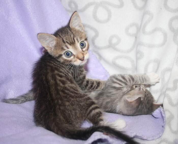 Котята растут совершенно ручные и даже близко не похожи на свою суровую мамку с явно сложной биографией.