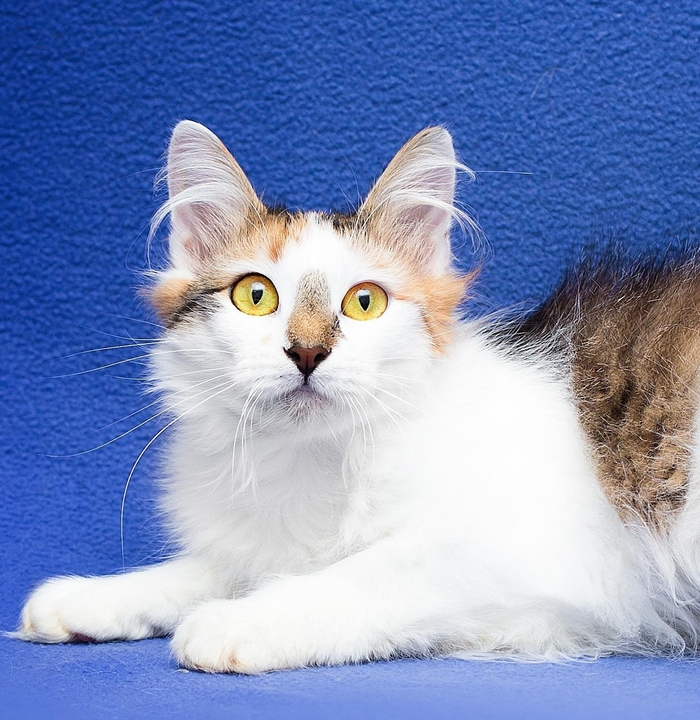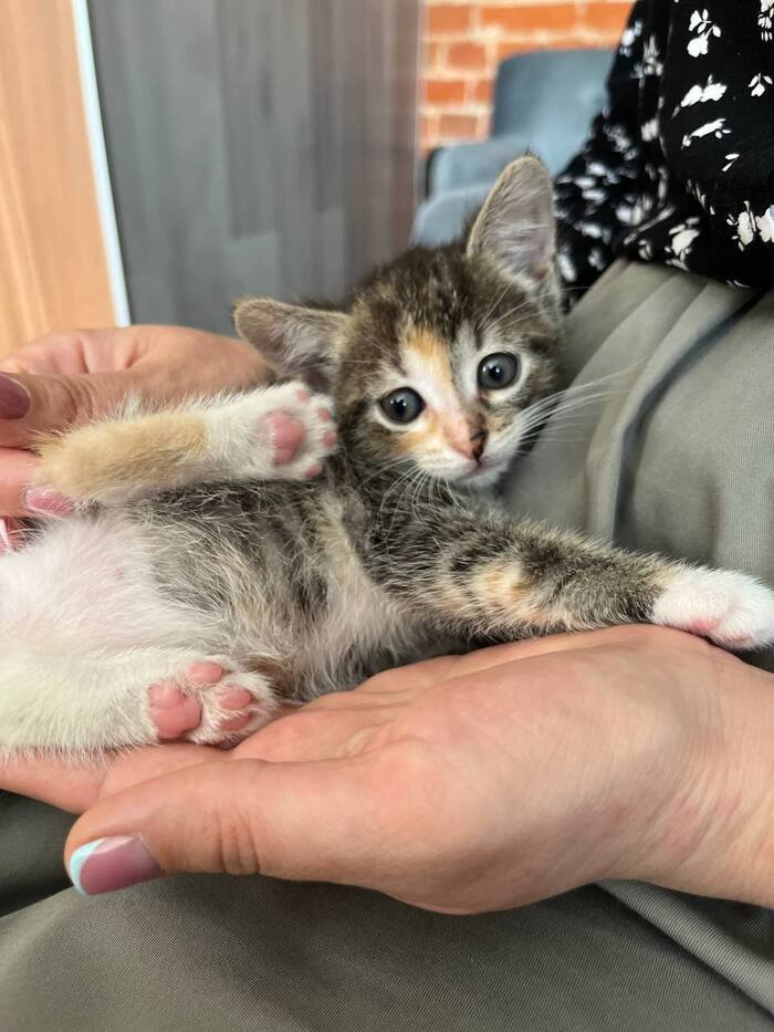 Мила очень ласковая и очень красивая малышка с изумительным окрасом, совсем еще подросток, ей около 10 месяцев. Она обработана от паразитов, проглистована и стерилизована