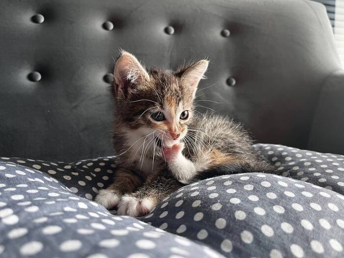 Утром мы отправидись к ветеринару - вердикт, зверюге всего 1 месяц, ручная, возможно выброшенная домашняя, по всем признакам здорова.