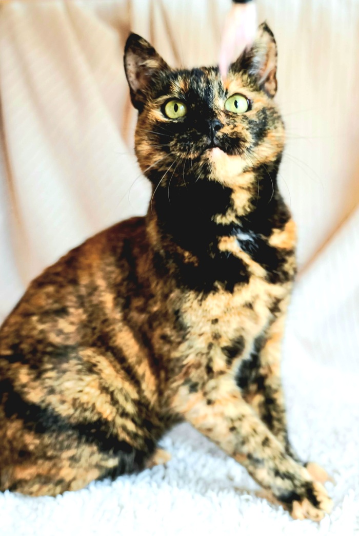 Все кошачьи науки изучены ею на отлично - лоток и когтеточка. Девчонка стерилизована, привита и имеет паспорт.