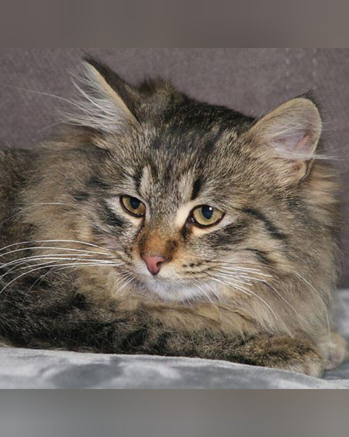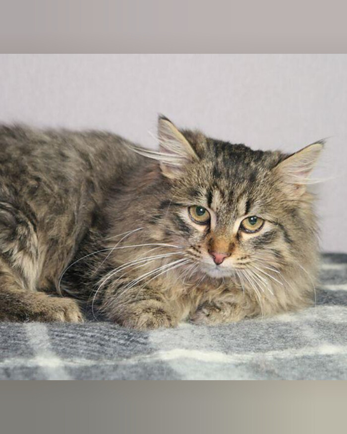 Невероятно пушистая, красивого лесного окраса табби (метис сибирской породы).