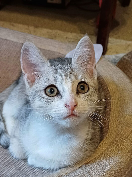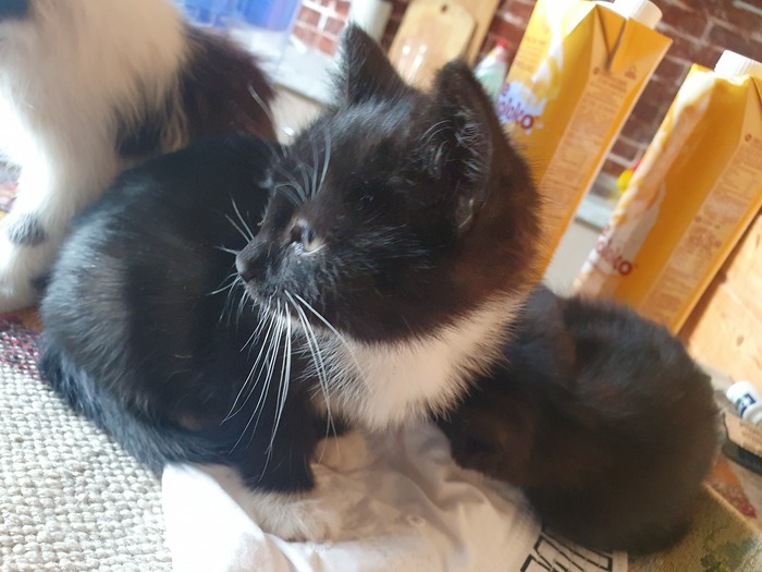 Спустя две недели неожиданно умер один из котят. Теряясь в догадках о причинах смерти, я похоронил его в ближайшем лесопарке. Еще через десять дней (11 августа) умер второй котенок. Я пытался спасти его и в последний момент отвез в ветеринарную клинику, но специалист сказал, что котенок при смерти и самым гуманным выходом будет его усыпить. По мнению ветеринара, в гибели животного виновата инфекция, поразившая органы дыхания, глаза, а затем и головной мозг. Его слова: «Смотрите за остальными» — заставили меня через день забрать оставшихся в живых котят к себе домой. Было это 13 августа. Все трое оказались мужского пола. После того как я помыл и осмотрел своих новых питомцев, стало ясно, что у двух из них сильно поражены глаза. На следующий день я показал их ветеринару. Им был поставлен диагноз «воспаление оболочки глаза». У всех был взят анализ крови и назначено лечение антибиотиками, противовирусными препаратами, обработка глаз физраствором и глазные капли. На сегодняшний день лечение дало хорошие результаты. У одного из котят глаза пришли в порядок. У второго открылся один глаз полностью и один наполовину. У третьего понемногу начали выздоравливать оба глаза, но до конца лечения еще далеко, хотя прогноз благоприятный. По словам ветеринара, глаза сохранились, а воспаление пройдет.