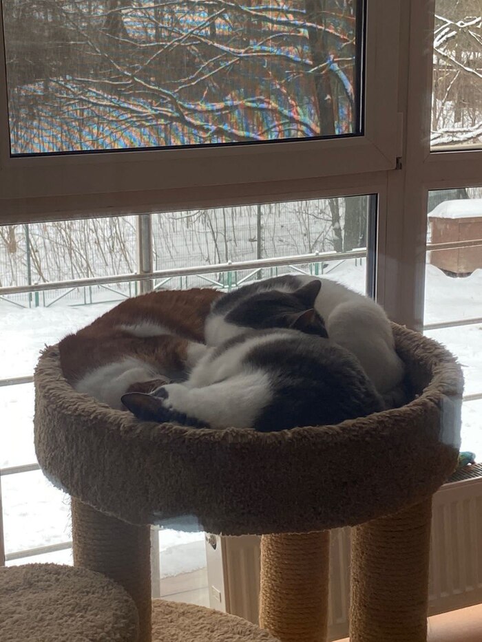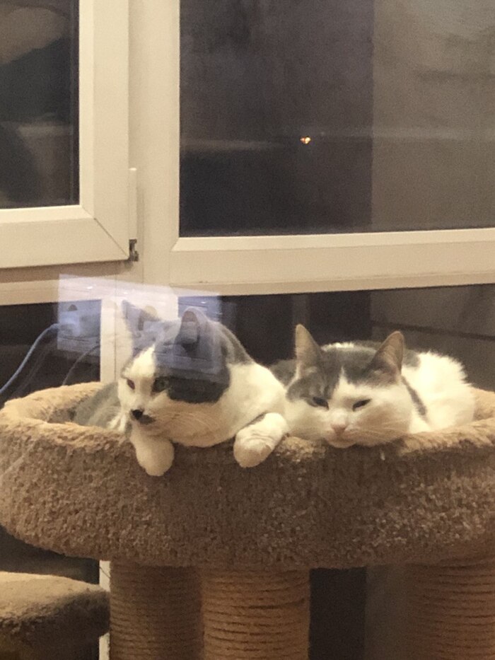 В поисках дома две добрые сестры, 2.5 г. Рождены на улице осенью 2020 г. Добрячки, ласкуши, жуткие трусихи, очень дружные и потешные, мы их так и называем - паркетные кошки. Есть животные, за которых душа спокойна, хоть они и живут на улице, но, если за ними добрые люди смотрят, стерилизуют, лечат, строят домики, то не пропадут. Эти же две совсем не для коммунальной квартиры. Их обижают абсолютно все от ежей до сорок, не говоря о сородичах, именно поэтому очень хочется им найти дом.