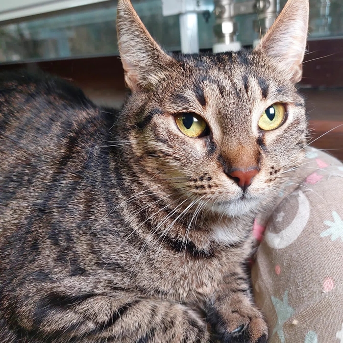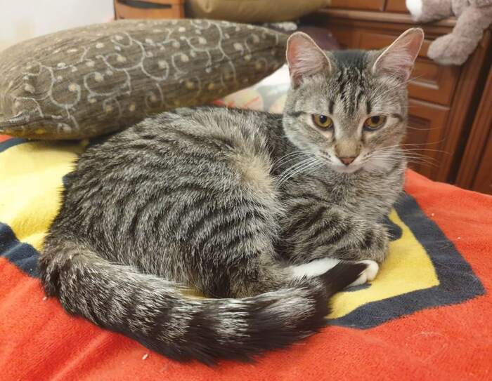 Первый раз, когда месячных домашних котят подкинули к подвалу и всех разорвали собаки. Она одна выжила и нашла довольно быстро новый дом, аспустя 2 года ее предали второй раз. Вернули в приют по семейным обстоятельствам.