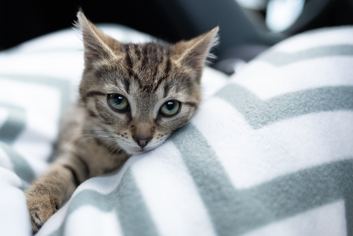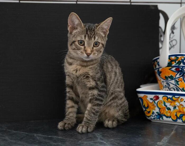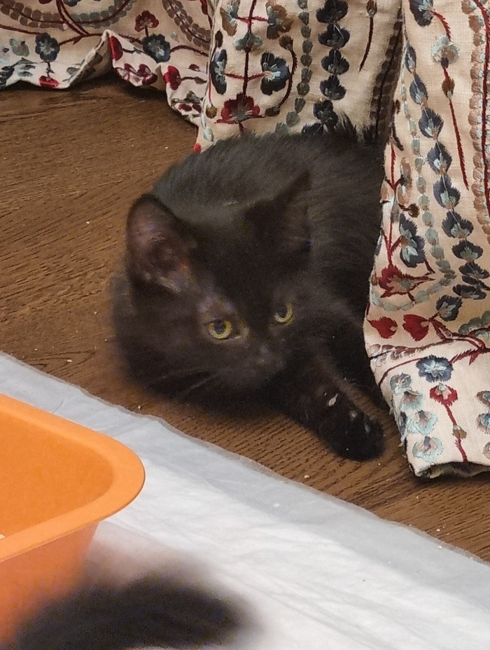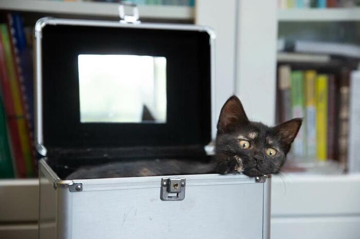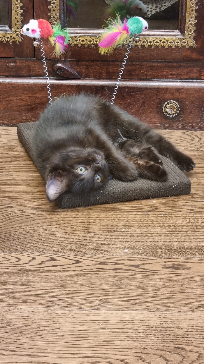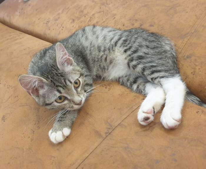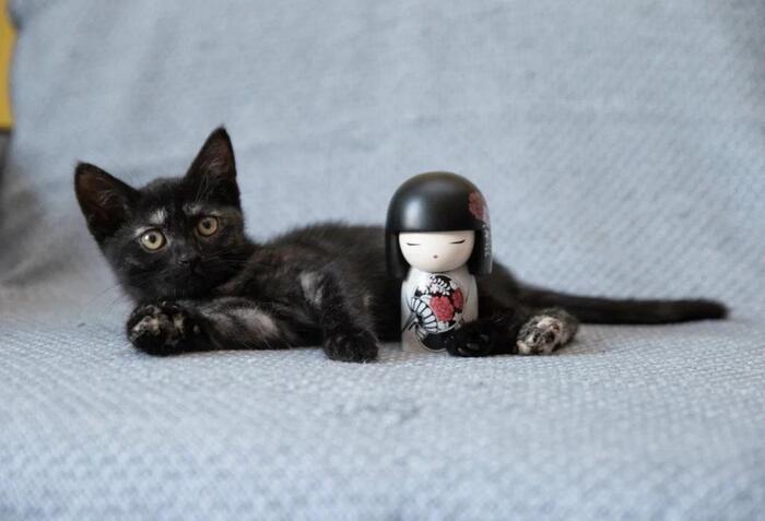 Нежнейшая и трогательная девочка с деформированной передней лапкой, очень ласковая и человекоориентированная, сейчас своей крепостью считает клетку и не выходит оттуда, хотя дверь всегда открыта.