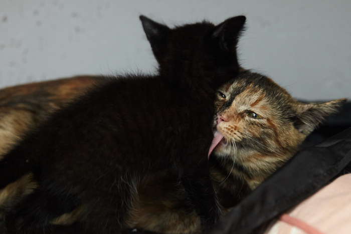 Его настоящую мамочку мы не знаем… нашли его 1-недельным и подложили к другой кошке седьмым котенком.
