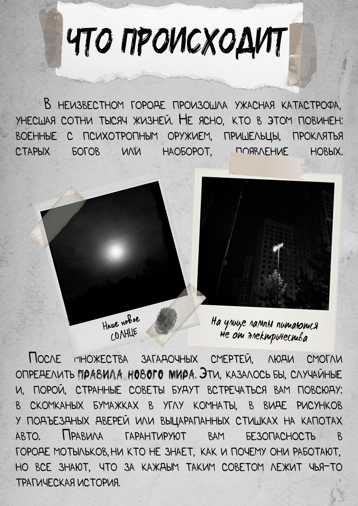 Когда я сказал своим игрокам, что хочу поиграть во что-нибудь хоррорное и при этом повседневно тягучее, первое, что они у меня спросили: "и как ты себе это представляешь?"