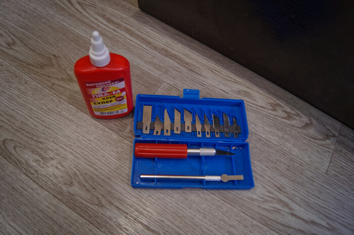 Инструменты: макетные и канцелярские ножи, пила по дереву, кисточки, карандаш.