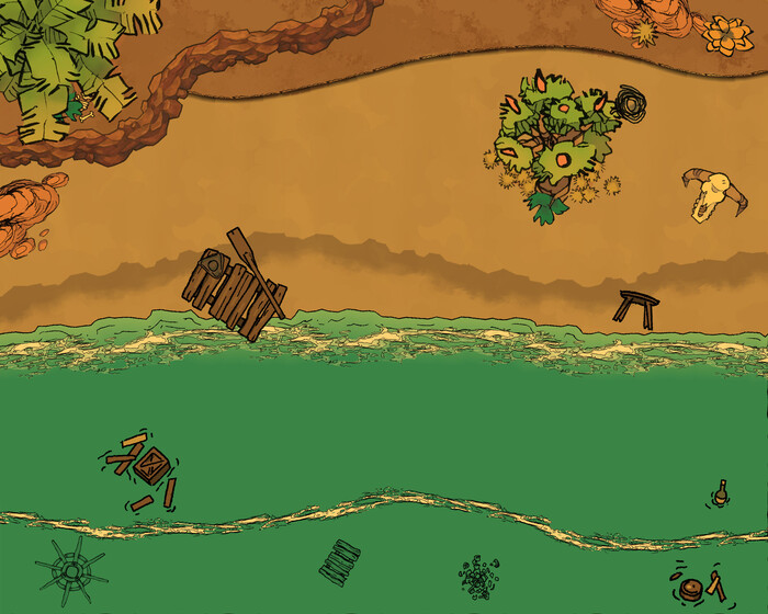 19. Шлейфы пепла и потоки лавы вырываются из подводного отверстия близко к поверхности воды, поскольку остров медленно рождается рядом. Куски горячего пепла, копоти и лавы рассекают воздух, и корабль потенциально находится в зоне поражения.