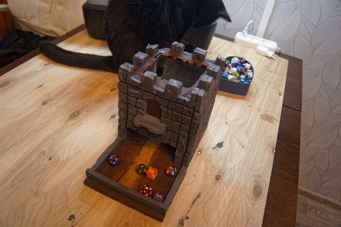 Всем привет! Задумал я не так давно начать водить партии в днд, а чтобы было удобнее и атмосфернее - решил сделать своими руками пару штук. Первая из них - башня для дайсов.