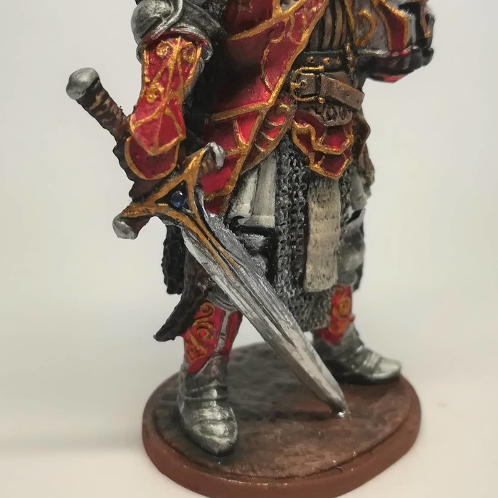 Роспись ещё одной миниатюры. Тут, к счастью, переделывать ничего не пришлось. В меч так же вставлен натуральный сапфир (хотела красный камень, но рубин был слишком розовый, а граната не оказалось).