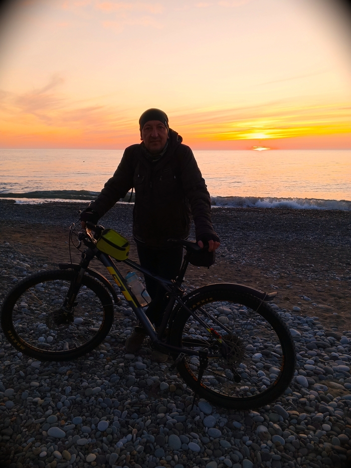 Обратный путь проделали по дороге. По берегу ездить не комфортно, все время в кого-то упираешься. Это вам не Сириус с велодорожками. Вообще, в Лазаревском в плане вело поездок, нам не понравилось. Ездить не комфортно ни по дорогам, ни по тротуарам. Тесно. Да и поехать особо некуда. За весь день накатали 18 км. Посёлок небольшой. Ладно, будем ходить пешком.