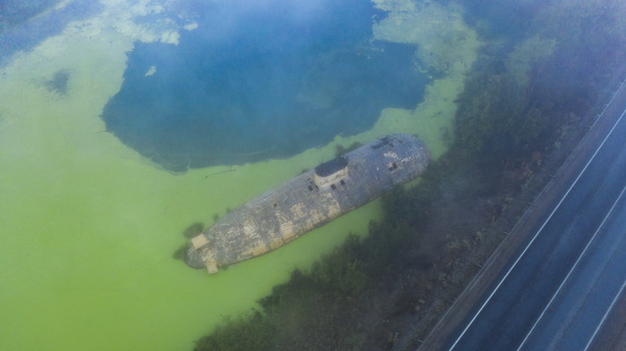 В общем, когда уже отсняли, я прочитал об этой локации. Лодка из фанеры, создана для рекламы коттеджного посёлка. Но выглядит всё равно необычно