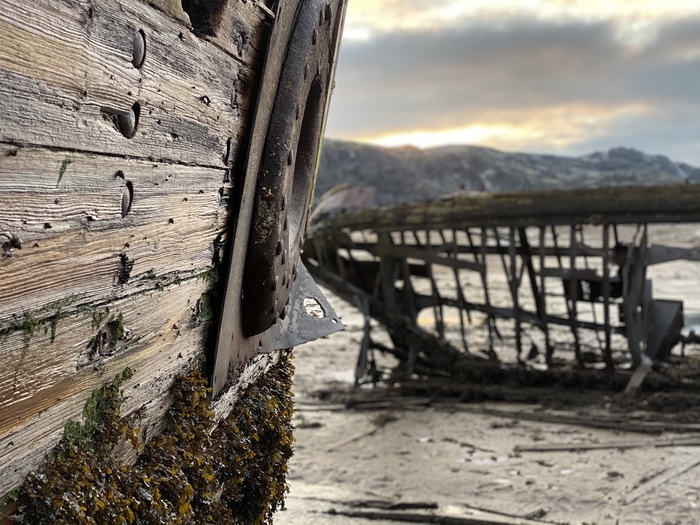 Вчера мне повезло дважды. Впервые в жизни я увидела кладбище кораблей и это впечатляюще. Был отлив и можно было разглядеть все в самых мельчайших деталях.