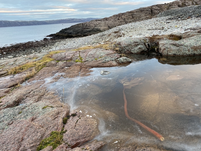 появляется очень неприятные ощущения. Приплыв в бухту, высадились на берег. Рогода пасмурная, без флиски зябко. На берегу разожгли костер, чтобы отпугивать медведей от лодки. А сами пошли к ближайшей речке Крашениникова. Мы с помощью сети, поймали немного красной рыбы: гольца, горбуши, к сожалению попались только самцы. На спидинг поймали еще около 4 рыб. Выпотрошили и разделали рыбу, начали собираться обратно. На яхте приготовили уху.
