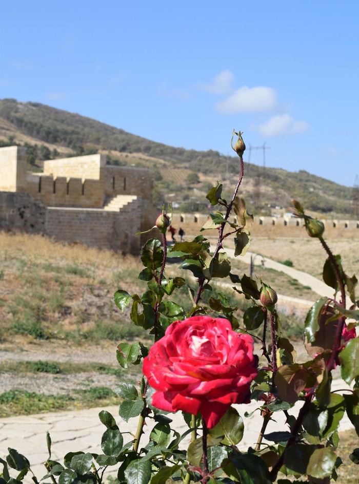 знаменитая древняя дербентская крепость, которая и превратила город в «Закрытые ворота», возвышается над Дербентом с горы. Её двойные стены, которые спускались к самому Каспию, позволяли полностью контролировать узкий прибрежный проход от моря на юг, к Персии. С трёх сторон крепость защищали крутые горные утёсы, а в стенах на расстоянии около 25 метров друг от друга были выстроены башни.