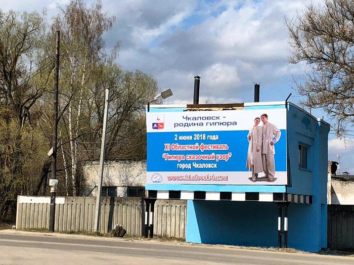 Чудовищный дизайн и расположение баннера не делают менее значимым тот факт, что в Чкаловске расположено предприятие "Гипюр", которое шьет постельное белье из льна и хлопка. К счастью, сейчас у компании с дизайном все хорошо, по крайней мере - на сайте: http://gipur-nhp.ru/.
