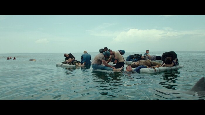 А вот видеомонтажер, судя по всему, работал бесплатно. Середина, посвященная выживанию моряков, самый пик драмы, нарезана, как винегрет. Эпизоды резко обрываются, резко начинаются, вроде была ночь — в следующем кадре уже день. Потом бац — и снова ночь. Столь динамичному монтажу позавидует любой мастер: от Сергея Эйзенштейна до Гая Ричи. В подобной мешанине ни о каком сопереживании не идет речи — повествование бешено скачет от одних героев к другим. Банально не успеваешь включить эмпатию.