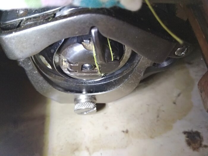 Почистил, смазал челнок - цепляет. Может челнок не от той машины, может брак, я не знаю. Поскрёб репу, взял гравёр, да и спилил вот так: