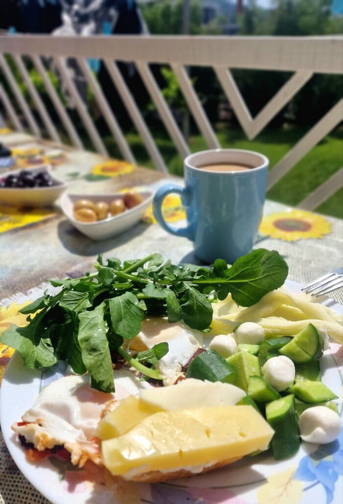 Я насчитала 5 разных сыров у нас на столе на завтраке. Оллинклюзив вышел покурить. И оливки, конечно же. В Турции ни один прием пищи не обходится без оливок. Я пью на завтрак кофе, а он чай и курит. Купил мне черешню, пока был на работе, я половину съела, половину ему оставила. Он смеётся - это все тебе, джаным, ешь. А у меня черешня никогда не пропадет, ешь так ешь.