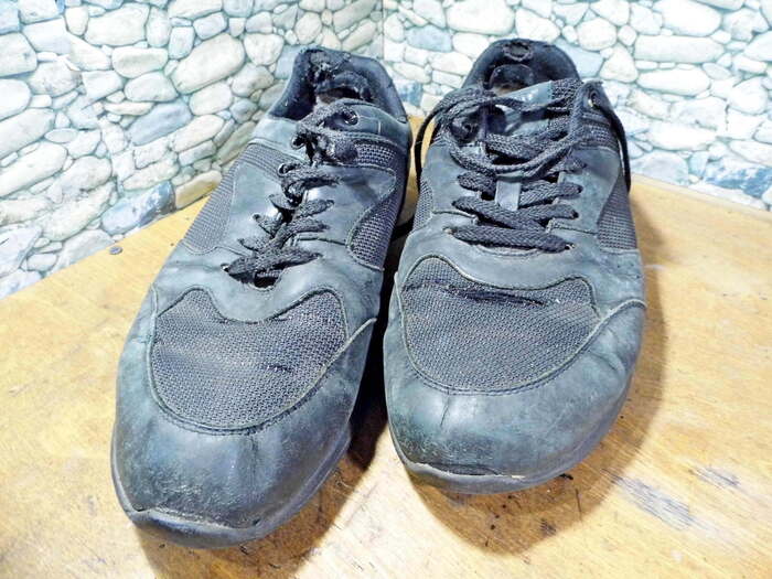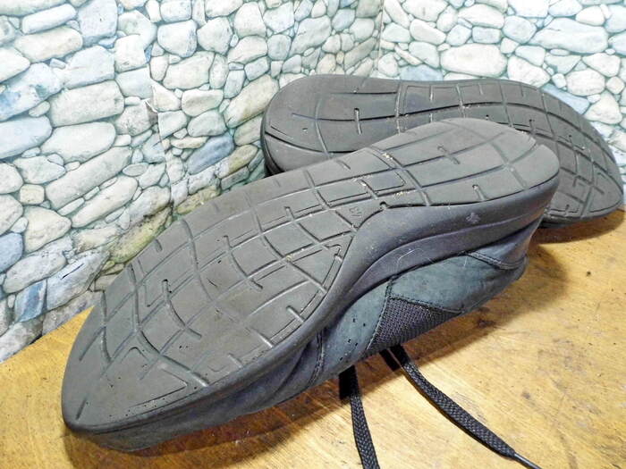 Казалось бы - ну и что? Менять, так менять. А вот то, что подошвы на каблуках треснуты! Причём обе.