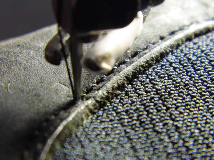 А ещё мы набойку всё же прибьём. Так как на неё возложены повышенные обязательства. В обычной ситуации площадь приклейки была бы более чем достаточна. Кстати, кто помнит, как называется инструмент рядом с молотком?