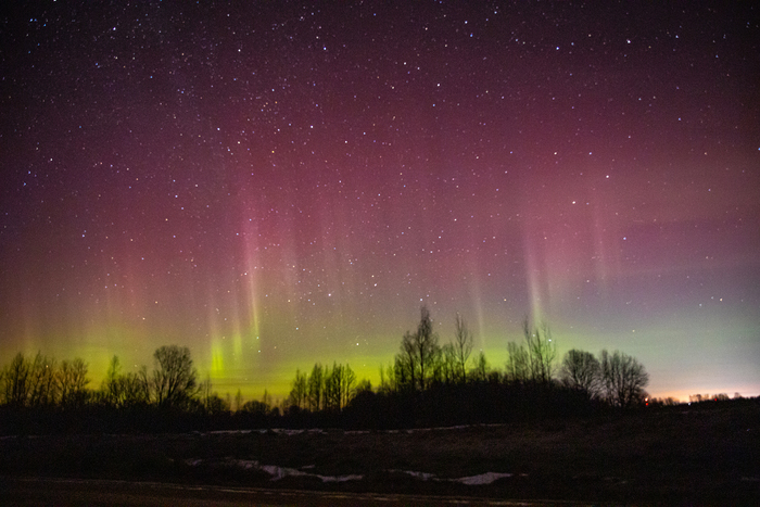 Сегодня нам повезло и ночь была ясной. Решили с ещё парой участников астроклуба "АстроПсков" выехать подальше от города за дип-скаями. Отъехали примерно на 40 км от Пскова (по карте по прямой если). Пока ставили оборудование, нам повезло второй раз - заметили северное сияние!