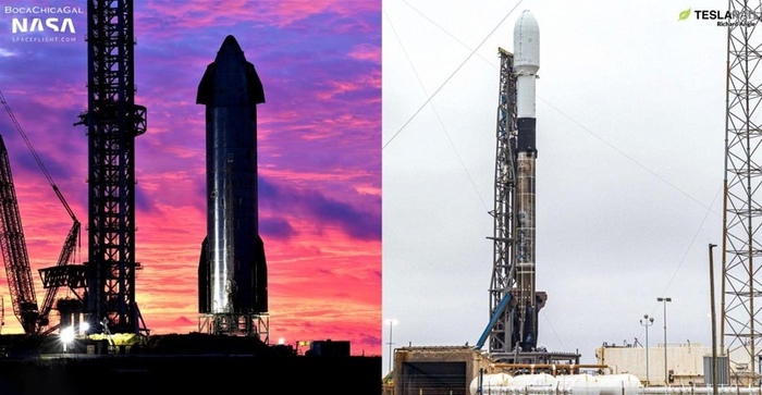 Орбитальная верхняя ступень Starship примерно такого же размера (и намного тяжелее и мощнее), как целая двухступенчатая ракета Falcon 9. (БокаЧикаГал/Ричард Энгл)