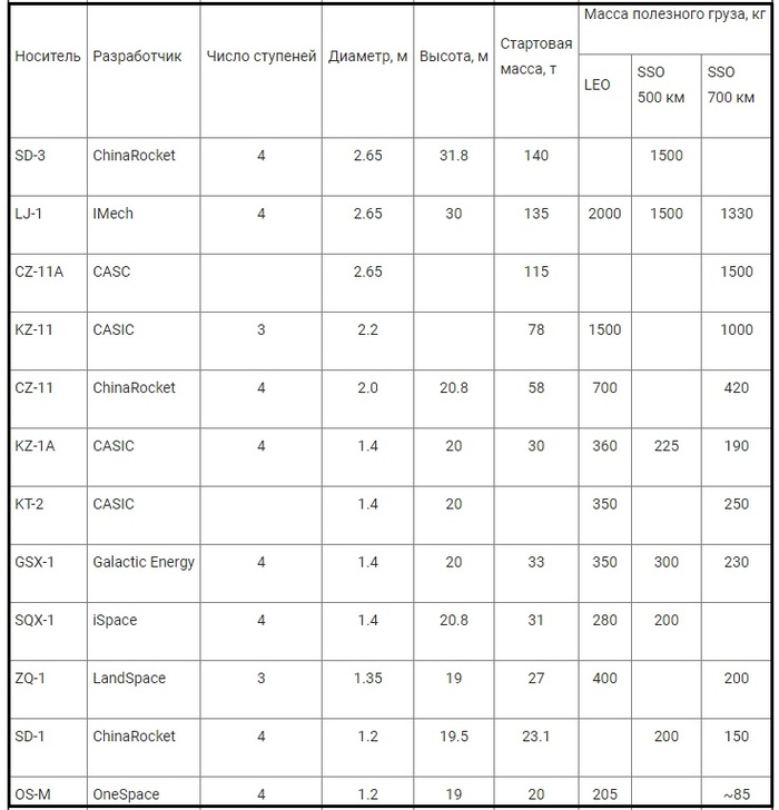 Таблица. Основные твердотопливные РН КНР