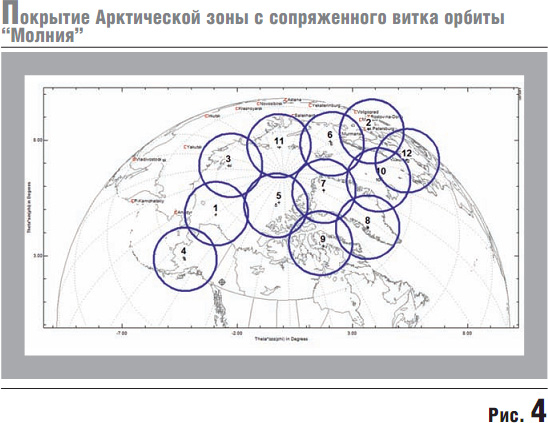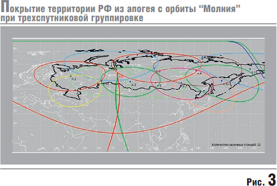 Преимуществами орбиты “Молния” можно считать лучшую освоенность, более высокую энергетику радиолинии (благодаря меньшей высоте апогейной области), значительно меньшие энергетические затраты при выведении КА на орбиту. Но решающим преимуществом, определившим в нашем случае выбор орбиты “Молния”, является наличие сопряженного витка, что позволило значительно расширить зону покрытия и практически удвоить пропускную способность системы связи [1, 2].