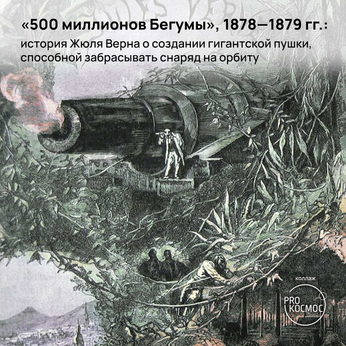 Еще через девять лет Жюль Верн в романе «500 миллионов бегумы» также высказал идею искусственного спутника Земли.