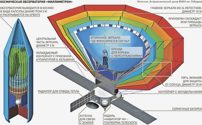 Криогенное устройство создается впервые специально под уникальные параметры "Спектра-М". "Мы надеемся, что та российская организация, на которую мы поставили сейчас, сначала сделает машину, охлаждающую до 70-60 градусов Кельвина, поскольку охлаждение у нас на борту планируется в два этапа, и потом возьмется за разработку 20-градусной машины", - отметила Лихачева.