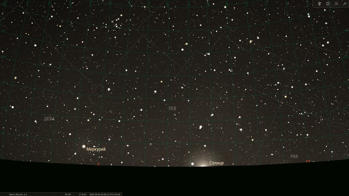 Располагаться на звездной карте этим вечером Меркурий будет на границе созвездий Льва и Девы.