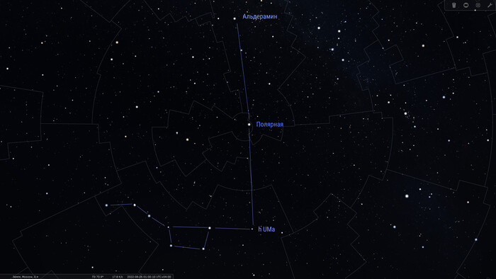 Дальше достроить фигуру созвездия Цефея — тот самый “домик” — не составит труда.