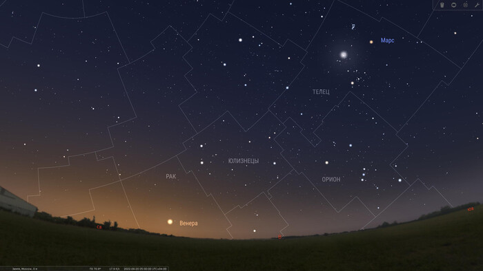 Перед восходом Солнца на небе появится Венера. Её утренняя видимость находится в фазе завершения, но до конце августа и даже в начале сентября Венера все еще неплохо видна за 30-40 минут до восхода в северо-восточном направлении.