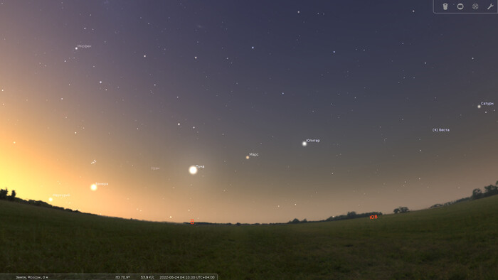И еще с 19 по 28 июня в этом районе неба будет проходить Луна, поочередно сближаясь со всеми упомянутыми планетами.