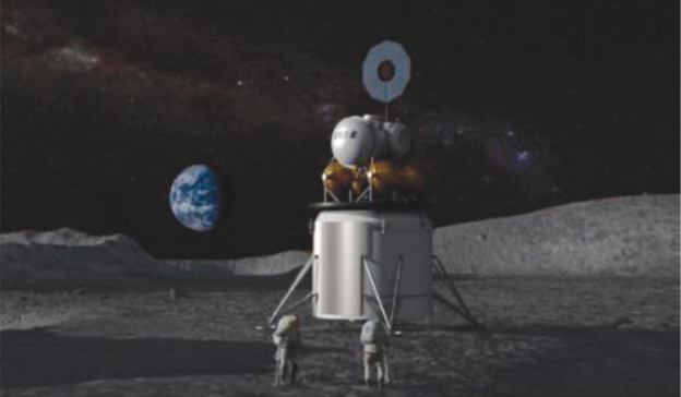 4) посадка космонавтов на поверхность планеты с использованием лунного взлетно посадочного комплекса (ЛВПК) и проведение подготовительной деятельности по ее освоению;