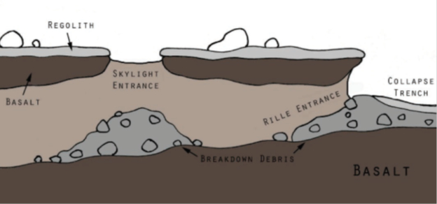 Как показывают исследования на Земле, лавовые трубки могут достигать 14–15 метров в ширину и находиться на глубине от 1 до 15 метров под поверхностью. При этом, общая длина участков лавовых трубок может быть очень большой и иногда достигает километра.