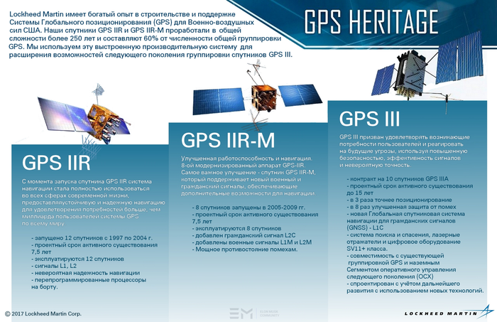 GPS III SV01-06 - самые мощные спутники Глобальной системы определения местоположения (GPS) из когда-либо разработанных для ВВС США. Новый гражданский передатчик GPS III L1C также сделает это поколение спутников GPS совместимыми с другими глобальными международными навигационными спутниковыми системами, такими как Galileo, что улучшает связь для гражданских пользователей.