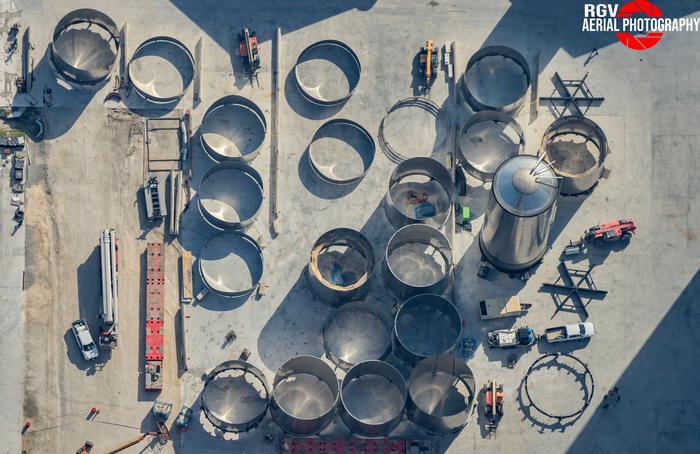На производственной площадке продолжается оснащение основного элемента стартового стола для Starship. Установлено 15 "фиксаторов" для удержания первой ступени.