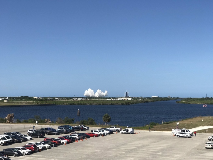 NASA: …Девять двигателей 1-й ступени ракеты Merlin были запущены в течение семи секунд для этого важного, но рутинного огневого испытания.
